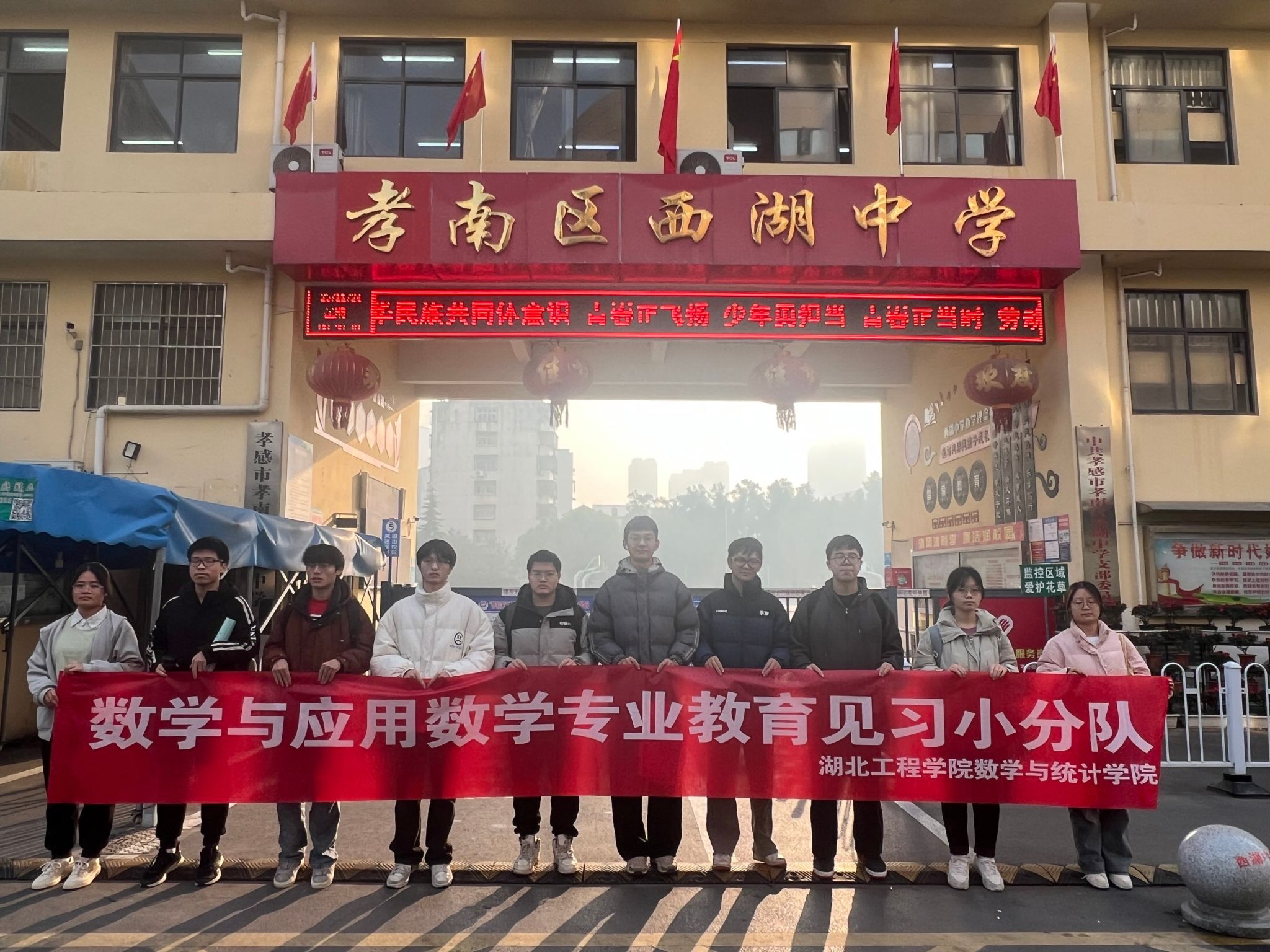 近日,数学与统计学院组织2023级、2024级数学与应用数学专业学生,前往孝感市多所中小学实践教学基地,开展了为期一周的集中教育见习活动。此次活动旨在深化师范教育理论与教学实践的有效融合。